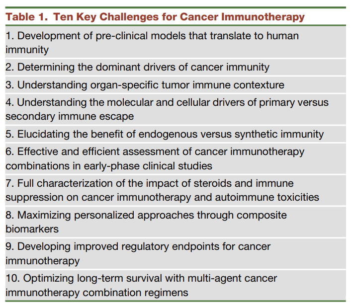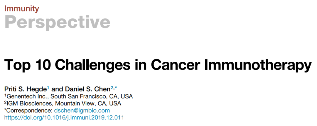 2020年初, Immunity 上的一篇文章,列举了目前肿瘤免疫治疗(CIT)面临的十大挑战。应对这些挑战需要基础科研人员和临床医师的共同努力,加速了解肿瘤与免疫系统之间的复杂关系,从而为肿瘤患者开发更好的治疗方案。