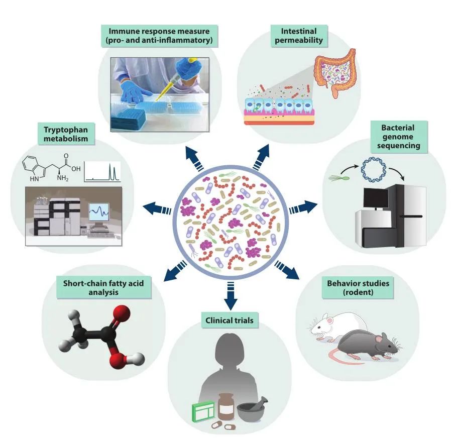 大量研究表明,重度抑郁症(MDD)患者与健康对照组相比肠道微生物特征改变,粪便微生物丰富度降低。有研究通过粪菌移植使焦虑和抑郁表型在受试者中表现,这表明肠道菌群在MDD中发挥作用。最近一项对Flemish肠道菌群的大规模研究项目也确定了抑郁人群中肠道菌群特征存在差异,在去除抗抑郁药物的混杂效应后,差异仍然存在。但新发现是抑郁人群中不存在CoprococcusDialister,而它们在非抑郁人群中的存在与生活质量评分呈正相关。这些发现表明肠道微生物在调节精神疾病中发挥重要作用。