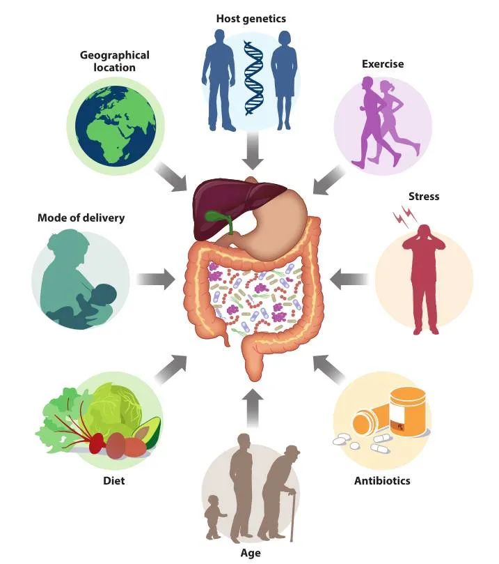 影响肠道菌群特征的因素。多种因素可能在整个生命周期中积极和消极地影响肠道菌群谱的组成和多样性。