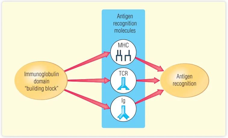 Fig 3.2 主要组织相容性复合物(MHC)与免疫球蛋白(Ig)以及T细胞受体(TCR)的差异