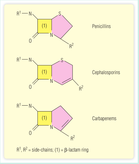 Fig 5.8 青霉素及其相关抗生素的结构。黄色的是β-内酰胺环
