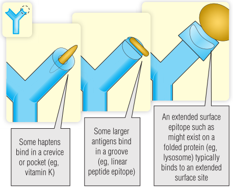 Fig 5.1 抗原结合位点的大小和形状因其结合的分子或表位的类型而异