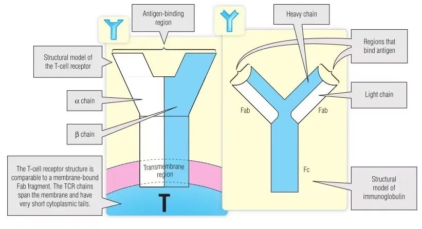Fig 7.1 T细胞受体(TCR)的结构与免疫球蛋白的比较