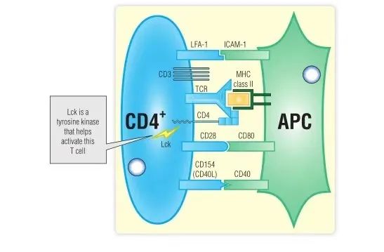 Fig 7.8 该图显示了CD4+T细胞和抗原提呈细胞之间的免疫突触