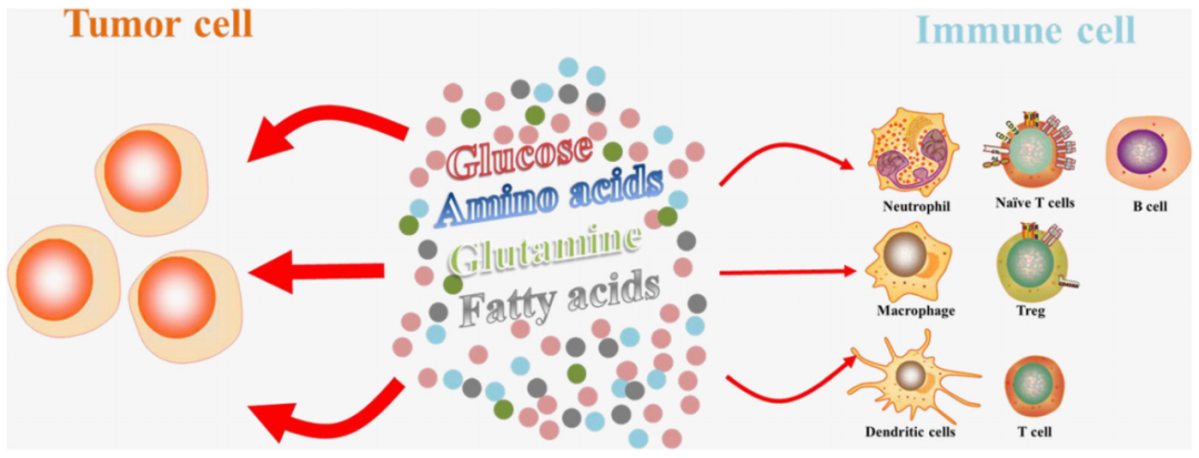 肿瘤和免疫细胞的代谢重编程之间的影响是肿瘤免疫应答公认的的决定因素之一。越来越多的证据表明,肿瘤代谢不仅在维持肿瘤发生和生存中起着关键作用,而且还可以通过释放代谢产物来影响免疫分子(如乳酸、PGE2、精氨酸等)。实际上,肿瘤和免疫细胞之间的这种能量相互作用导致了肿瘤生态系统中的代谢竞争,限制了营养的有效供给,并导致微环境酸中毒,从而阻碍了免疫细胞的功能。更有趣的是,在维持体内各种类型免疫细胞稳态的过程中,代谢重编程也是必不可少的。目前,越来越多的研究指出,免疫细胞在增殖、分化和执行效应器功能的过程中会发生代谢重编程,这对免疫应答至关重要。因此,了解肿瘤细胞和免疫细胞的代谢重编程如何调节抗肿瘤免疫反应,可以使我们在抗肿瘤免疫治疗中寻找到靶向代谢途径的治疗手段。