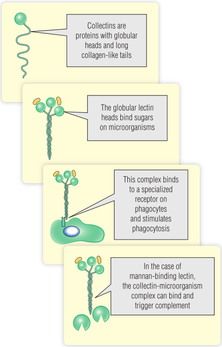 Fig 20.1  胶原凝集素家族包括表面活性蛋白和甘露聚糖结合凝集素,两者都是重要的模式识别受体