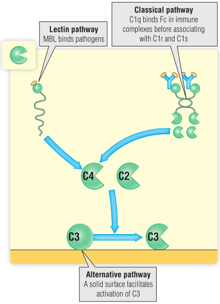 Fig 20.4 C3的激活可以通过三种途径中的任何一种;MBL,甘露聚糖结合凝集素