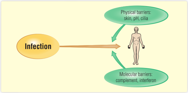 能够突破人体物理屏障的感染会激活固有免疫系统的分子屏障,其中包括干扰素系统和补体系统。