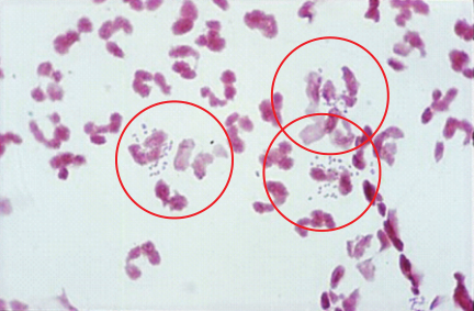 16岁男孩在急诊科出现严重头痛。他被发现发烧(发烧39.2℃;正常应低于37.0℃),并有明显的颈部僵硬。主治医生认为他可能患有脑膜炎,并要求进行血液培养和腰椎穿刺。脑脊液(CSF)正常应该是透明的,但在这种情况下,它是略微混浊的。脑脊液检查显示中性粒细胞数量显著增加,其中一些含有双球菌(Fig 20.13)。医生开始给病人静脉注射广谱抗生素,在接下来的几个小时里,男孩的病情有所好转。第二天,脑脊液样本培养证实感染了脑膜炎奈瑟菌。
