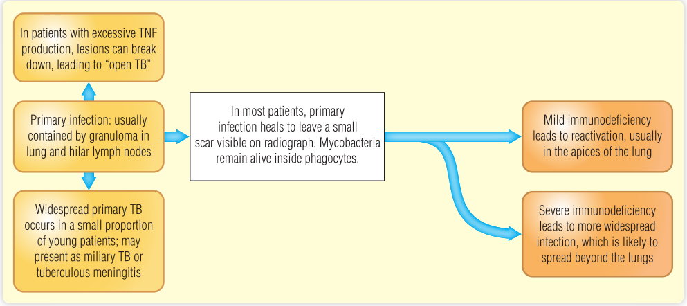 Fig 23.4 感染结核分枝杆菌可能有许多短期和长期影响