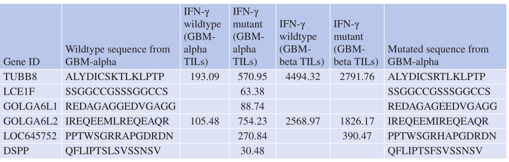 Table 4.2 MHC-I相匹配的不同患者的TIL突变表位的共同识别