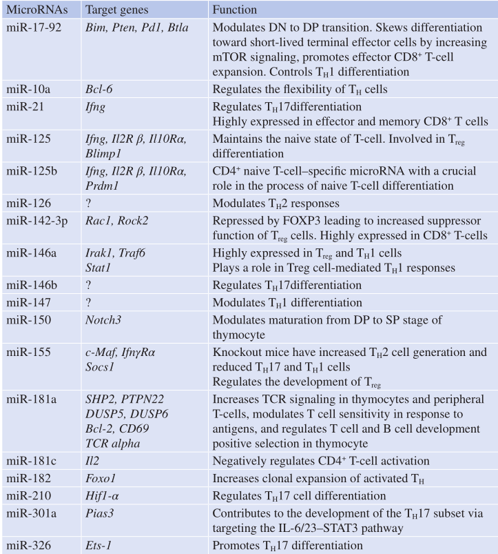 Table 5.2 与T淋巴细胞分化相关的microRNA