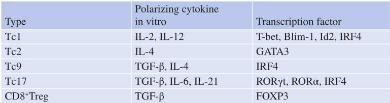 Table5.1 效应CD8+T细胞亚群、其极化细胞因子和对其分化重要的转录因子.