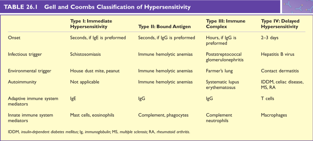TABLE 26.1 Gell和Coombs超敏反应分级