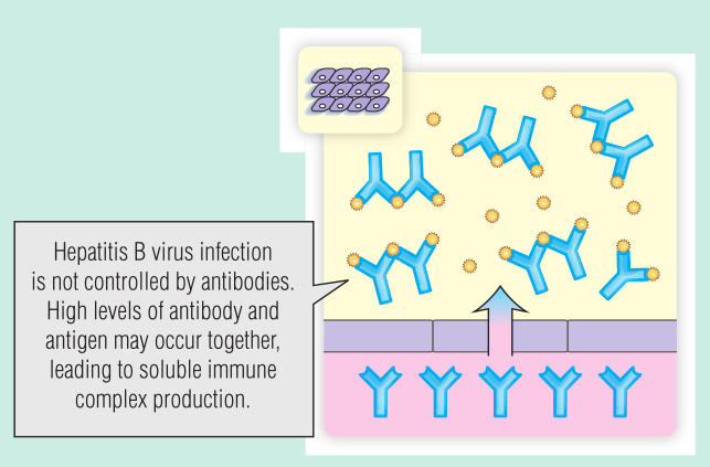 Fig 26.5 慢性感染,例如乙肝病毒,会导致更持久的免疫复合体疾病。