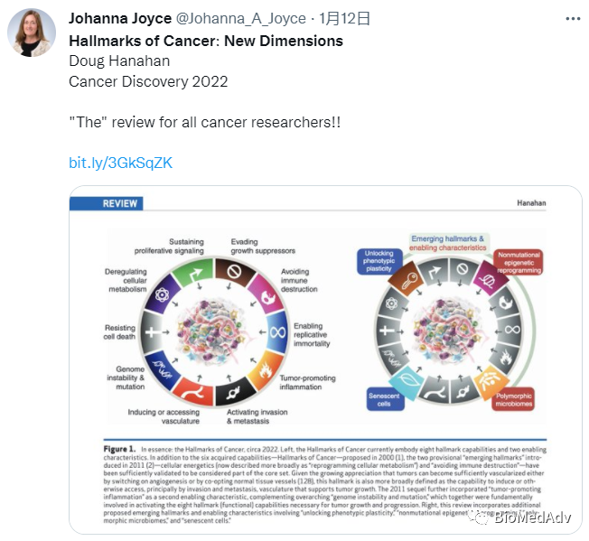 这次Hallmarks of Cancer的更新更是引爆Twitter刷屏,大量肿瘤研究专家转发推荐!
