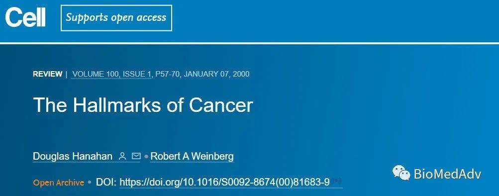 1、Douglas Hanahan, Robert A. Weinberg. The Hallmarks of Cancer. Cell. 2000; 100(1): 57-70.
