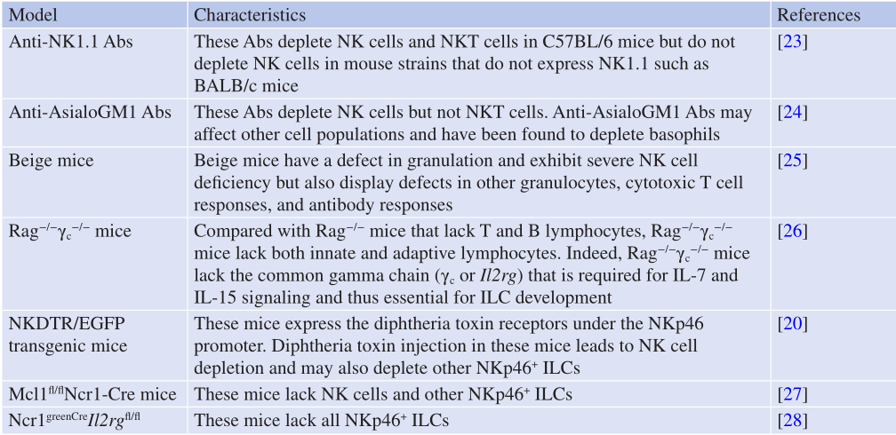 Table 9.1 用于研究NK细胞功能的小鼠模型和耗竭抗体