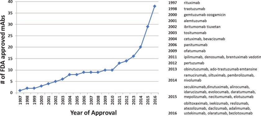 1894年,巴黎巴斯德研究所的Pierre-Paul Emile Roux博士证明了通过血清疗法治疗白喉具有一定的临床疗效。一个世纪后,1994年,美国加利福尼亚州斯坦福大学的Ronald Levy教授证明了抗体也可以治疗癌症。从那时起,抗体的设计和生产有了重大的改进,现在它们是许多癌症的常规疗法的一部分。