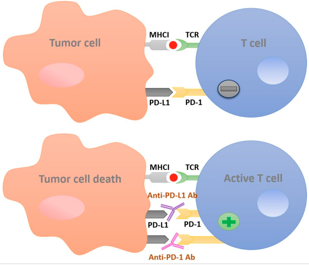 黑色素瘤是一种具有高度免疫原性的肿瘤。许多患者在治疗前都会自发的产生适应性CD8+T细胞抗肿瘤反应。这些T细胞通过它们的受体(TCR)识别黑色素瘤细胞,TCR能与特定的细胞表面复合物结合,这些复合物是由MHC-I类分子及其提呈的多肽(抗原表位)组成。这些多肽来源于肿瘤细胞中内源性蛋白质(抗原)的降解,降解后的多肽被装载到MHC-I类分子上,被运输和呈递到细胞表面。人体所有有核细胞上都有MHC-I类抗原肽复合物的表达,但与正常细胞相比,肿瘤细胞在抗原库中表现出的质和量的差异,使得CD8+T细胞能够识别它们为“改变的个体”。CD8+T细胞与特定抗原肽-HLA I类复合物结合后,释放细胞溶解颗粒到靶细胞上,从而启动细胞凋亡,并分泌干扰素γ,诱导周围细胞周期停滞和/或死亡。