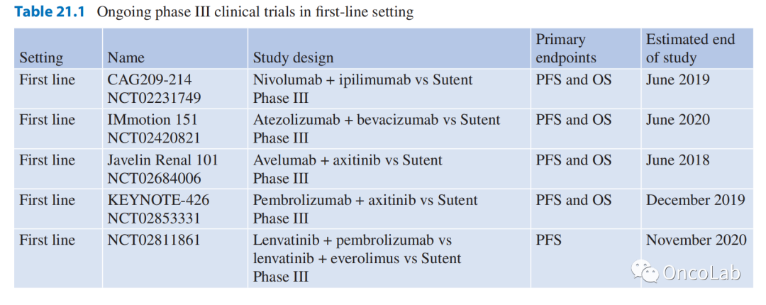 Table 21.1正在进行的第一线III期临床试验