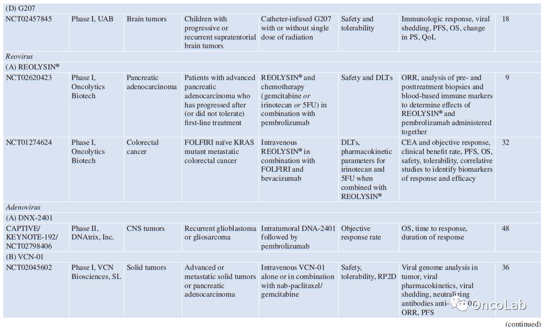 Table 24.1 溶瘤病毒正在进行的试验总结