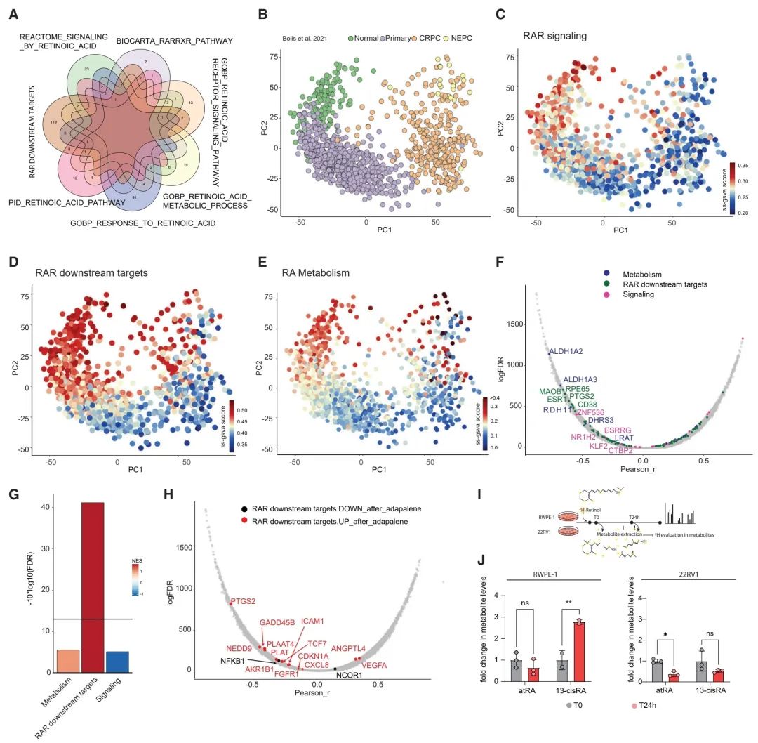 (C) PCA展示了PCa疾病进展过程中RAR信号通路的激活情况。