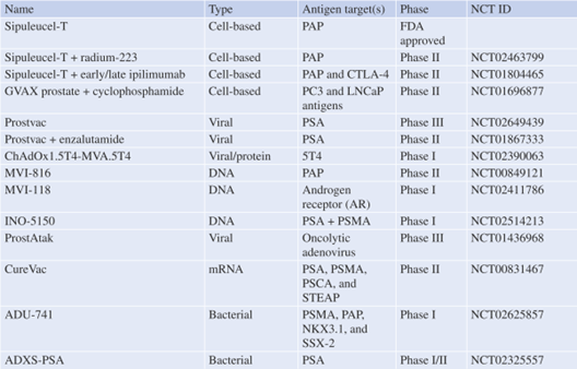 Table 35.2 入选临床试验的前列腺癌疫苗名称