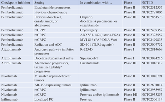 Table 35.1 前列腺癌的免疫检查点阻断试验