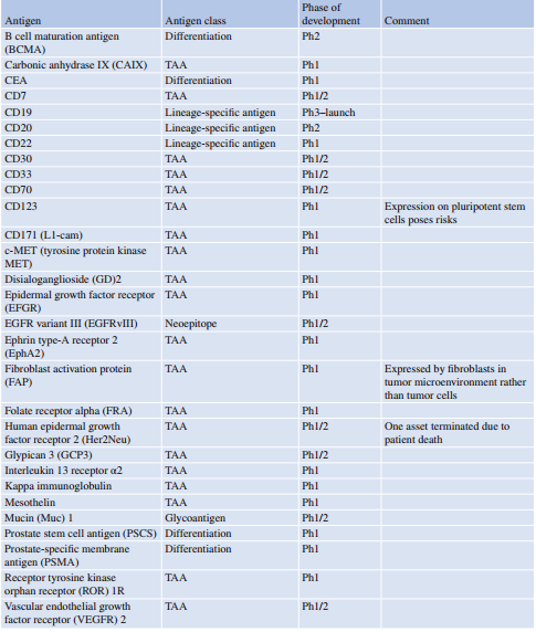 Table 42.2 CAR-T 细胞在临床试验中靶向的抗原