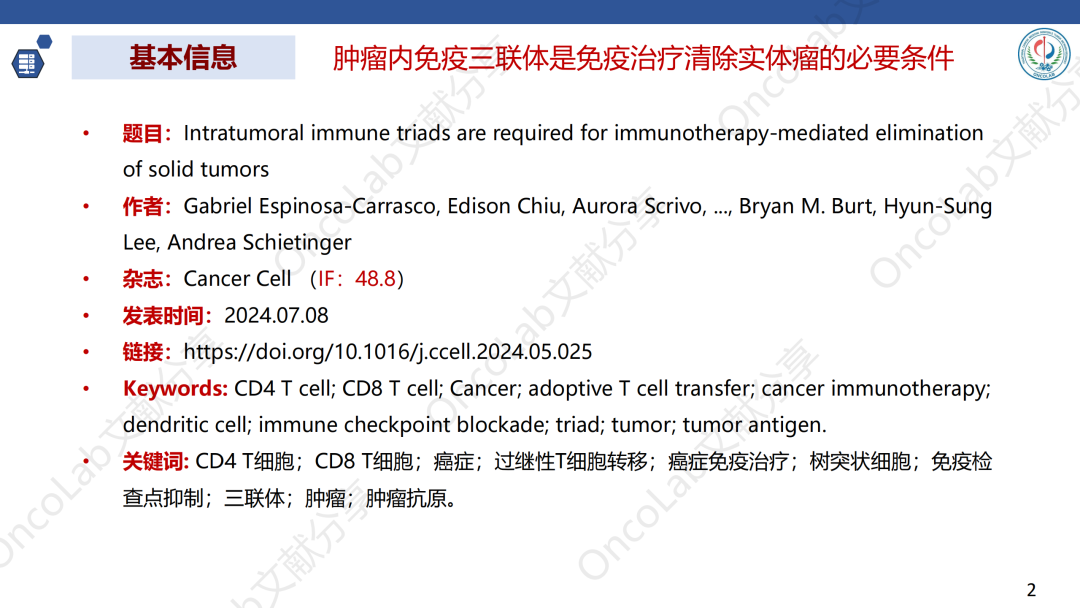 杂志名称:Cancer Cell 发表日期:2024.07.08 DOI:10.1016/j.ccell.2024.05.025 PubMed:https://pubme…